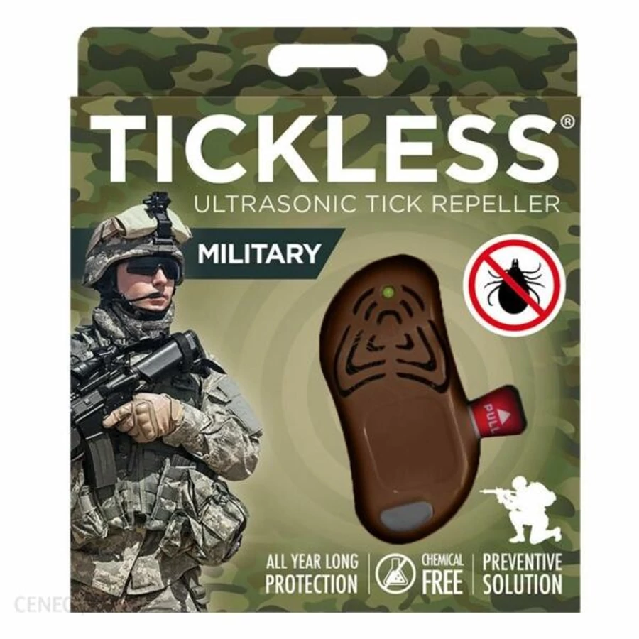 Bármennyi időt is töltesz a szabadban, a TICKLESS Military véd a kullancsoktól, vegyi- és illatanyagok használata nélkül. Csak rögzítsd biztonságosan ruházatodra, és a készülék minimum 6 hónapon keresztül távol tartja az élősködőket. A TICKLESS ultrahangos impulzusai érzékelhetetlenek az emberek és állatok számára, de zavarják a kullancsokat. Hatósugara kb. 2 méter. Elsődlegesen megelőzésre szolgál. Környezetbarát, nem tartalmaz vegyszereket vagy illatanyagot, tökéletesen biztonságosan használható mindenki számára. A TICKLESS® technológia hatékonyságát az olaszországi Camerino Egyetem Orvosi Mikrobiológiai és Fertőző Betegségek Laboratóriumában elvégzett klinikai kutatás bizonyította. Vegyszer- és illatanyag mentes Hatótávolsága 2 méter Hatékonysága klinikai tesztekkel igazolt Egész szezonban védelmet nyújt HASZNÁLATA: Húzd ki a nyelvecskét a készülék aktiválásához, 4 rövid zöld villanás jelzi a bekapcsolást. A gomb egyszeri megnyomására felvillanó LED-del bármikor ellenőrizheted a működést. A TICKLESS kullancsriasztót a rajta lévő csipesszel, vagy a nyíláson átvezetett zsinórral kell a ruházathoz rögzíteni. A kibocsájtott ultrahang-hullámokat ne fojtsd el azzal, hogy zsebbe vagy táskába teszed a készüléket. A készülék átlagos időjárási körülmények között minimum 6 hónapon keresztül működik. Kullanccsal nagyon erősen fertőzött területen nem garantált a 100%-os védelem.